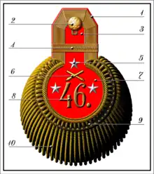 - épaulettes rouges (écarlate) pour l'artillerie et l'artillerie de marine ;