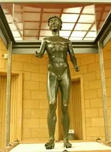 C'est l'unique statue en bronze de cette taille retrouvée dans les vestiges siciliens[2]. Sa coiffure dénote une influence attique mais sa réalisation est d'« une gaucherie assez touchante, caractéristique d’un atelier local » selon Pierre Lévêque[1]. La tête semble plus ancienne que le corps[2].
