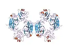 Les éphrines, également dénommées « ligands d'éphrine » ou encore « protéines interagissant avec le récepteur de la famille Eph », sont une famille de protéines destinées à servir de ligands au récepteur Eph[1]. Les récepteurs Eph, à leur tour, composent la plus grande sous-famille connue des protéines de type récepteur à activité tyrosine kinase (RTK)[1],[2].
