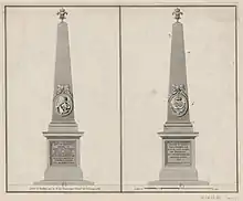 - Pyramide commémorative de la bataille d'Ivry (obélisque) érigée en 1804 sur ordre de Bonaparte en visite dans le village en 1802 pour rappeler le souvenir du lieu où se reposa Henri IV après la bataille d'Ivry le . La légende veut en effet que le roi se reposa sous un poirier au lieu-dit de l'Ente[22], ainsi que le rappelle la plaque commémorative scellée sur le socle de l'actuel obélisque. Pour en garder le souvenir, l'un de ses descendants, Louis-Charles de Bourbon, prince d'Anet, y fit poser le une grande pierre et ériger deux ans plus tard une petite « pyramide » au sein d'un quadrilatère délimité par un grillage en fer et cantonné aux quatre angles par une borne de pierre. Y succéda par la suite un premier obélisque, édifié en 1777 par Louis-Jean-Marie de Bourbon, duc de Penthièvre, cousin et héritier du prince. Cet obélisque était surmonté d'une fleur de lys dorée[23]. Le monument fut saccagé à la Révolution mais les médaillons de marbre et la fleur de lys, qui avaient été déposés à titre préventif par le duc de Penthièvre, furent conservés au château d'Anet dans l'appartement qu'avait occupé le Grand Dauphin. A l'état de ruine lors de la visite du premier consul[24], l'obélisque fut réédifié sur les dessins de l'ingénieur en chef André Cahouet[25]. L'édifice est classé au titre des monuments historiques depuis 1862[26]. Renversé par la tempête de fin décembre 1999, le monument a été restauré l'année suivante. Chaque année le dernier week-end du mois d'octobre se tient une journée portes ouvertes de ce monument, organisée par l'association de défense du patrimoine rural présidée par Richard Buhan, originaire de la commune.