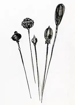 - (en) Cet article est partiellement ou en totalité issu de l’article de Wikipédia en anglais intitulé « Hatpin » (voir la liste des auteurs).