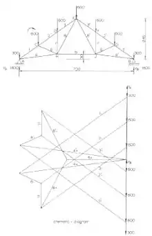 Les différents triangles ainsi constitués pour chaque nœud peuvent être placés à la façon d'un puzzle, ce qui constitue le diagramme (ou épure) de Cremona.