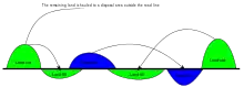 L'épure de Lalanne trace dans un repère défini en abscisse par l'axe du projet, en ordonnée les volumes cumulés (déblai >0, remblai<0). Les surfaces obtenues représentent la somme des moments de transport (quantités en m³ équivalent remblai × distance à un point de référence). L'épure de Lalanne peut également être vue comme l'intégrale des quantités (en équivalent remblai) le long du profil.
