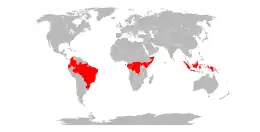 | Indonésie (Bornéo) | 0° 00′ S, 109° 09′ E | 0° 00′ S, 117° 31′ E | 931 |