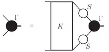 où Γ est l'amplitude de Bethe–Salpeter, K l'interaction et S les propagateurs des deux particules.