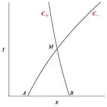 Les deux caractéristiques et en un point M passant par A et B (voir courbe) transportent l'information contenue dans l'invariant de Riemann correspondant à l'onde propagée depuis ce point, dans le sens t croissant. Les valeurs en M dépendent donc de ces informations et de l'entropie portée par la ligne de courant passant par ce point. De tout point à l'intérieur du domaine ABM partent des invariants qui intersectent et . Les valeurs en tout point intérieur sont donc liées aux valeurs en M. Cette propriété définit le domaine ABM comme domaine d'influence des valeurs en M ou, ce qui revient au même, définit le domaine de dépendance de M. De la même façon on définit le domaine d'influence de M par les caractéristiques partant de ce point.