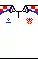 Le premier maillot de la Croatie a été conçu en 1991 par le peintre avant-gardiste croate Miroslav Šutej (en) (1936-2005), qui a également dessiné les armoiries de la Croatie. Bien que légèrement modifié par ses équipementiers Lotto et Nike depuis sa version originale, le maillot est restée fidèle à l'identité nationale du pays en gardant la présence du damier rouge et blanc également utilisé pour représenter d'autres équipes et athlètes croates[17]. Lors de la saison 2019-2020, le maillot du FC Barcelone, où joue le Croate Ivan Rakitic, prend le motif à damiers mais avec les couleurs du club (bleu et grenat)[85].