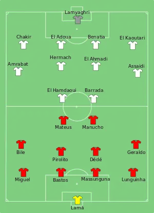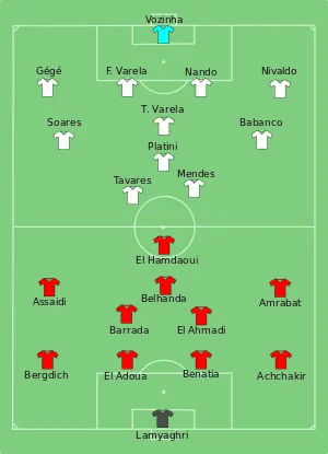 Durant le premier quart d'heure, de nombreuses attaques marocaines étaient intéressantes, notamment celles d'El Ahmadi (12e min), Assaidi (15e min) et El Hamdaoui (16e min) [10].