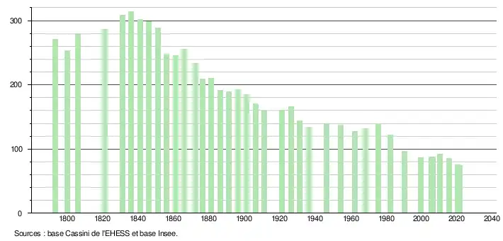(Sources : Ldh/EHESS/Cassini jusqu'en 1999[16] puis Insee à partir de 2006[17].)