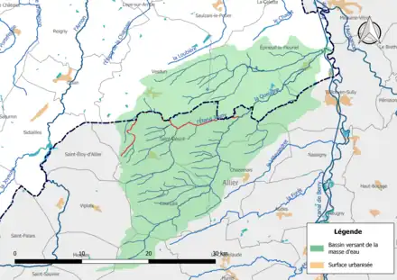 | Sources : SANDRE:« Fiche cours d'eau (K5265200) », Géoportail | |