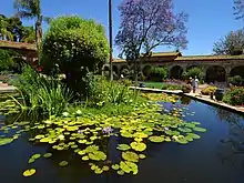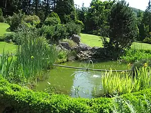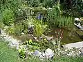 Des plantes aquatiques y sont généralement installées pour éviter le verdissement de l'eau, les blooms planctoniques et épurer l'eau (eau de pluie récupérée, naturelle, dérivation d'un cours d'eau (pratique interdite dans certains pays) ou eau du robinet). Une pompe peut y entretenir une circulation d'eau, animer un jet d'eau ou filtrer l'eau. Un surpresseur en augmente parfois le taux d'oxygène.