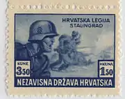 Le régime croate participa au conflit sur le front de l'Est, en envoyant 9 000 soldats, qui participèrent notamment à la bataille de Stalingrad[7].