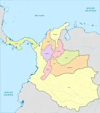 Entre 1863 et 1886, le territoire des États-Unis de Colombie est composé de neuf États fédérés appelés « États souverains » selon la Constitution de 1863 :