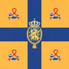 1815-1908 | Avant 1908, l'étendard royal était le drapeau national avec, posées sur la bande blanche, les armoiries du royaume sans le manteau. | |