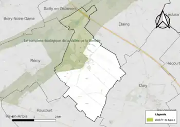 Le territoire communal comprend une ZNIEFF de type 2[Note 2] : le complexe écologique de la vallée de la Sensée. Cette ZNIEFF de la vallée de la Sensée s’étend sur plus de 20 kilomètres depuis les communes de Remy et Haucourt jusqu’à la confluence de la rivière canalisée avec l’Escaut. Elle forme une longue dépression à fond tourbeux, creusée entre des plateaux aux larges ondulations ; Ostrevent au Nord, bas-Artois au Sud et Cambrésis à l’Est[15].