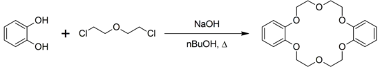 L'éther dibenzo-18-couronne-6 est un composé aromatique qui peut être obtenu à partir de catéchol et d'éther de dichloroéthyle[3]. Cet éther couronne est un chélateur efficace qui possède une forte affinité pour les cations de métaux alcalins.