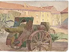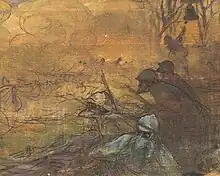 Ces œuvres constituent une forme de correspondance en images: il y montre les paysages qui l’environnent, son quotidien, les soldats qui l’entourent, mais aussi quelques scènes plus guerrières (patrouilles de nuit, attaque au gaz).