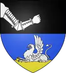 Armes avant 1816: "coupé, au 1 de sable, au dextrochère armé d'argent, mouvant du flanc dextre, au 2 d'azur, au griffon d'argent, couché sur une terrasse d'or, la dextre posée sur un boulet de même[2],[3]."