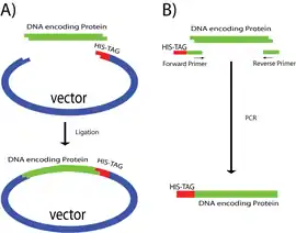 Les étiquettes poly-histidines sont utilisées pour purifier des protéines recombinantes, en général produites par E. coli[2] ou par d'autres procaryotes.