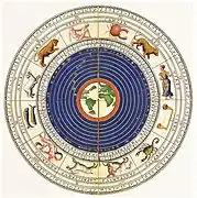 C'est notamment le travail de Giordano Bruno qui contribue à démontrer qu'il n'y a pas d'astre central et que les planètes évoluent à l'infini ; il remet ainsi en cause la théorie des étoiles fixes dès 1584[4],[5]. Cette représentation eut cours jusqu'à la révolution copernicienne et fut abandonnée vers la fin du XVIe siècle.