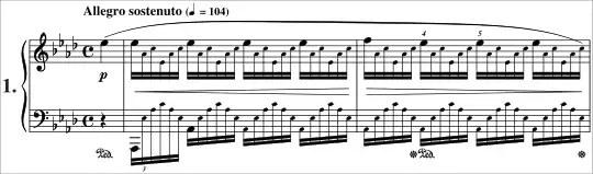 Cette étude comprend une mélodie de la main droite et une ligne de basse de soutien, l'accompagnement étant constitué d'accords brisés, fournis par les voix intérieures des deux mains, généralement en tuplets de doubles croches. La main gauche introduit de temps en temps des polyrythmes. La mélodie principale est présentée par la main droite sur la première note de chaque groupe de sextuplés, avec des contre-mélodies occasionnelles fournies par les voix intérieures.