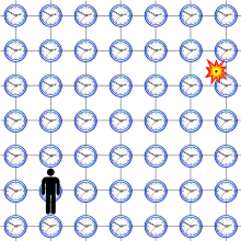 L'intervalle d'espace-temps entre deux événements A et B se calcule par la formule[1] :