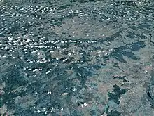 Dans les Préalpes suisses à Saint-Gall, des blocs de pierres calcaires du Jura sont découverts dans des roches plus jeunes des molasses dont l’origine est incertaine. En raison de leur ressemblance avec les Reuterschen Blöcke ("blocs de Reuterschen") – des blocs de pierre calcaire propulsés jusqu’à 70 km en dehors du Ries – l’influence d’un impact de météorite qui aurait pu se produire au moment de l’impact du Ries est également envisagée. Ces réflexions sont appuyées par la découverte de cônes de percussion[18],[19]. Jusqu’à présent, aucune structure de cratère correspondante n’a cependant pu être trouvée. Il est probable que l’impact ait eu lieu dans les sables meubles des molasses, de sorte qu’un cratère qui se serait formé à cet endroit n’a pas été conservé ou que le cratère a été englouti par le lac de Constance. Des analyses détaillées, réalisées à l’aide de forages de recherche, doivent encore être réalisées.