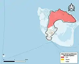 Le retrait-gonflement des sols argileux est susceptible d'engendrer des dommages importants aux bâtiments en cas d’alternance de périodes de sécheresse et de pluie. 70,5 % de la superficie communale est en aléa moyen ou fort (54,2 % au niveau départemental et 48,5 % au niveau national). Sur les 346 bâtiments dénombrés sur la commune en 2019, 195 sont en aléa moyen ou fort, soit 56 %, à comparer aux 57 % au niveau départemental et 54 % au niveau national. Une cartographie de l'exposition du territoire national au retrait gonflement des sols argileux est disponible sur le site du BRGM[20],[Carte 2].