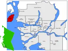 Île Bowen (rouge) dans le district régional du Grand Vancouver.