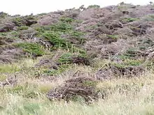 Les prairies recouvrent 20 % de l'île. Les principales espèces de cet habitat sont les pâturins (Poa sp.), la flouve odorante (Anthoxanthum odoratum), les agrostides (Agrostis sp.), la fléole des prés (Phleum pratense) et le fétuque rouge (Festuca rubra). On y retrouve aussi quelques arbustes comme l'aulne crispé, le genévrier (Juniperus sp.) et le rosier brillant (Rosa nitida)[23]. Il y a deux tourbières sur l'île, qui couvrent 0,5 % de celle-ci. Outre la sphaigne, l'une est dominée par le kalmia à feuilles étroites (Kalmia angustifolia) et l'aronie à fruits noirs (Aronia melanocarpa) et l'autre par les carex (Carex sp.)[24]. En haut des falaises, on trouve des landes à camarine. Cette formation est dominée par la camarine noire (Empetrum nigrum), l'airelle rouge (Vaccinium vitis-idaea) et le raisin d'ours (Arctostaphylos uva-ursi)[24].
