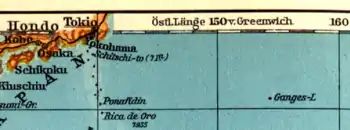 L'île reste cependant sur les cartes officielles du gouvernement japonais jusqu'en 1946[28], elle est encore visible dans un atlas français de 1950[29] et Stommel signale malicieusement que l'île Ganges (sans son nom mais avec l'île visible) était encore visible sur un globe dans le bureau de la compagnie aérienne Lufthansa en 1982[13].