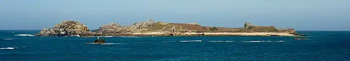 L'île d'Yoc'h (ou île d'Iock) vue depuis la presqu'île Saint-Laurent (en Porspoder).