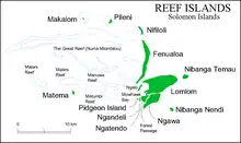 Carte des îles Reef. Nukapu et Nupani ne figurent pas sur la carte, étant situées plus au nord-ouest du groupe principal.