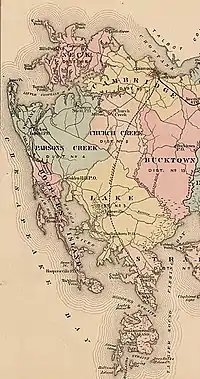| Puddiford's Chance | vers 38° 18′ 00″ N, 76° 12′ 29″ O | États-Unis, baie de Chesapeake, Maryland | Un des dizaines (voire centaines) d'îlots engloutis de la baie. Située dans le groupe des Hoopers Island (illustration), l'île fut concédée à un domestique nommé David Puddiford en 1672 à la fin de son engagement[50]. | E+C | ![]() |