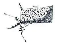 | Eilean-a-beithich | vers56° 13′ N, 5° 37′ O | Ecosse | Dans cette île du groupe Slate, une carrière d'ardoise est exploitée depuis le XVIe siècle. Elle atteint un hectare de surface et 76 m de fond quand, tôt le matin du , la paroi se rompt sous les effets conjugués d'un vent violent et d'une marée de forte amplitude, et la mer envahit la carrière (illustration : reste de la paroi sud de la carrière, avec la brèche)[42]. | H | ![]() |