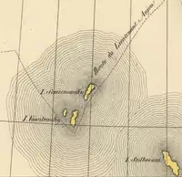 | Sabrina | Portugal, au large de São Miguel | Surgit le d'une éruption volcanique sous-marine, et atteint 1,5 km x,1 km. L'érosion marine l'a détruite en [14]. | V | ![]() | |