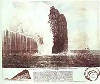 | Geirfuglasker | 63° 19′ 04,29″ N, 20° 29′ 44,01″ O | Islande, près de Reykjanes | Îlot rocheux volcanique escarpé (en islandais « rocher du Grand pingouin »), c'était un des derniers refuges du grand pingouin. Détruit par une éruption volcanique en 1830 (illustration : schéma du XVIIIe siècle). | S | ![]() |