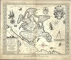 | Écueils de Gunnbjörn | 65° N, 30° O | Entre l'Islande et le Groenland | Découverts au IXe siècle et colonisés à partir de 970, ces îlots étaient une étape lors des traversées vers le Groenland (jusqu'à 18 fermes en 1391). Une éruption volcanique les détruisit en 1456. | S | |