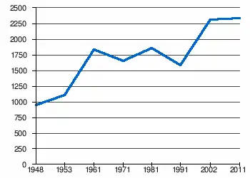 En 2002, l'âge moyen de la population était de 41 ans pour les hommes et 43 ans pour les femmes[7].
