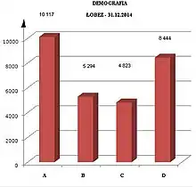 Łobez - démographie: A - résidents, B - femmes, C - hommes, D - adultes. 31.12.2014 r[3].