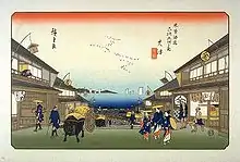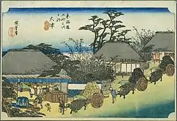 Ōtsu-juku dans les années 1830, estampe de Hiroshige de la série Les Cinquante-trois Stations du Tōkaidō.