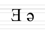Formes où la majuscule est basée sur un E majuscule réfléchi et la minuscule sur un e minuscule tourné. | |