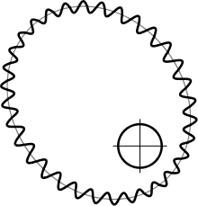 • si est la hauteur d'une dent, le cercle primitif est à 0,56⋅h du bas de la dent (cercle de pied) et à 0,44⋅h du sommet (cercle de tête).