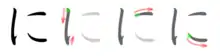 L'hiragana に et le katakana ニ proviennent, via les man'yōgana, des kanjis 仁 et 二, respectivement.