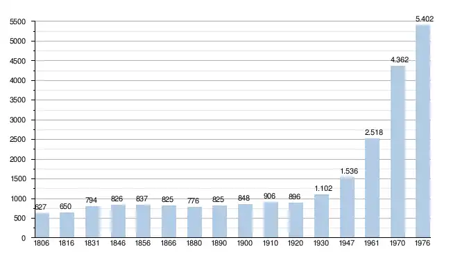 - Sources : INS, Rem. : 1831 jusqu'en 1970 = recensements, 1976 = nombre d'habitants au 31 décembre[2].