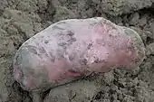 La « Désirée », juste sortie de terre. Elle est obtenue par croisement de la variété « Urgenta ». La forme de la pomme de terre peut rappeler celle d'un astéroïde.