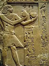 - IXe et Xe dynasties d’Héracléopolis[11]. Règnes de Khéty Ier, premier pharaon d’Héracléopolis, puis de Mérikarê et Khéty II (IXe dynastie). Les noms de plusieurs rois sont perdus. Règnes de Neferkarê, Khéty III et Mérikarê II (IXe dynastie)[8]. L’absence de pouvoir central régulateur ne permet plus de pallier les insuffisances de la crue du Nil, ce qui provoque des famines et des mouvements de révolte. L’Enseignement pour Mérikarê fournit les renseignements les plus détaillés sur la période. L’autobiographie du nomarque Ânkhtyfy, retrouvée dans sa tombe de Mo’alla, texte contemporain, atteste des rivalités et des troubles économiques[14]. Khéty Ier rassemble en son pouvoir les nomes de Moyenne-Égypte et du Fayoum et installe sa capitale à Héracléopolis. Il prend le titre de roi de Haute et de Basse-Égypte. Au sud, il rencontre la résistance des princes d’Hermonthis. Les rois de la IXe dynastie, soutenus par les princes de Siout et d’Hermopolis, tentent de regrouper les provinces égyptiennes et de libérer le delta des Asiatiques. Les rois d’Héracléopolis, tout en donnant un prestige renouvelé au dieu de leur ville Harsaphes, tentent de rétablir la prééminence de la cosmogonie solaire pour pallier le particularisme religieux propre à chaque nome.