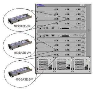 Routeur avec des interfaces 10 gigabit Ethernet et trois types de module physique