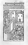 - « Albert le Grand avec ses étudiants », gravure sur bois, frontispice de (la) Gerardus Harderwyck, Epitomata seu Reparationes totus philosophiae naturalis Aristotelis, Cologne, Heinrich Quentell, 1496.
