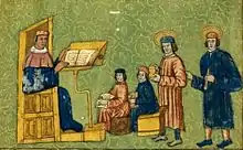 - Frontispice de La Chirurgie de maître Alenfranc, qui sera imprimée pour la première fois vers à Vienne-en-Dauphiné sous le titre de Lanfrancus ou le Grant Alanfrant.